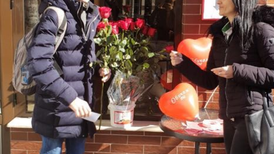 Младежкото обединение на БСП - Перник зарадва много влюбени в града с валентинки в любимия им червен цвят и с червени рози, послание на уважение, любов и символ на БСП.