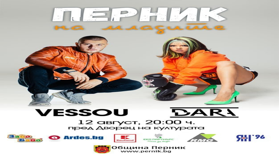 Перник ще празнува Международния ден на младежта с едни от най-популярните млади изпълнители Дара и Vessou. Концертът ще започне в 20:00 ч. пред Двореца на културата. Събитието се организира традиционно от Община Перник и Консултативния съвет за младежка политика. През тази година младежките организации, които работят на територията на общината отново ще представят дейността си пред перничани. Информационната част от празника ще започне в 19:00 ч. пред Двореца на културата. Освен това ще видим различни демонстрации и игри.