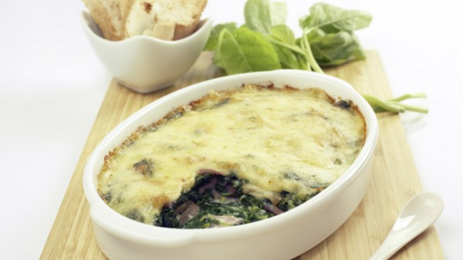 Месото се накълцва и се изпържва. Добре изчистеният и измит спанак се нарязва ситно, изпържва се със ситно нарязания лук.Месото и спанакът се посоляват със сол и черен пипер. В тавичка се нареждат пласт месо, пласт спанак, докато се напълни тавичката, като горният пласт е спанак.Слагат се парченца масло и ястието се пече. Когато е почти готово се залива с разбитите яйца и кисело мляко и се допича.