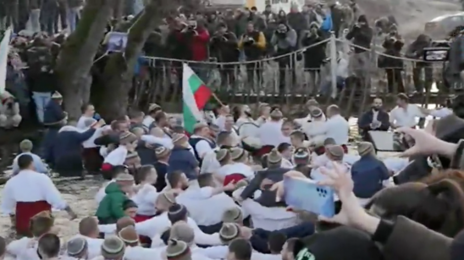 В Калофер точно в 8 тази сутрин се изви традиционното леденото хоро във водите на река Тунджа. И тази година пандемията не спря традицията. В ледените води първо влизат калоферци, извършва се ритуалът, а след това може да влязат всички желаещи. Водата е осветена.