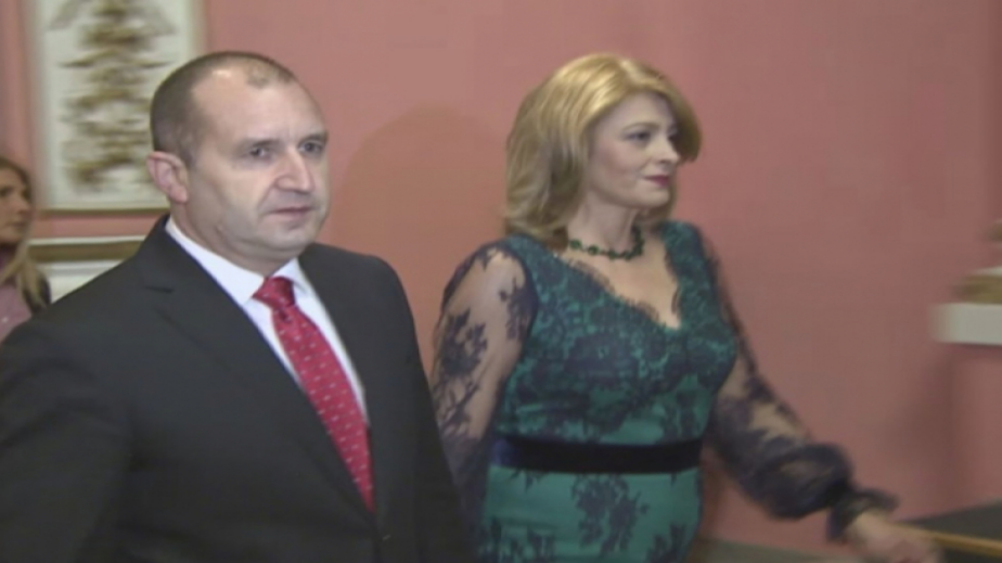 На приема първата дама Деси Радева блесна с нов, по-рус цвят на косата и ослепителен тоалет в петролено зелено и нежна дантела. Вицепрезидентът Илияна Йотова бе избрала същия стайлинг. Роклята й бе в подобен цвят и отново с дантели. /БЛИЦ