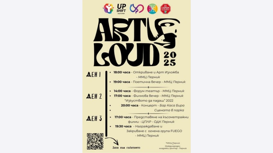 Националният арт фестивал "ArtLoud" ще се проведе от 2 до 4 май в Перник. Той е насочен към темата за менталното здраве сред младите хора, стигмата и дезинформацията, свързана с него.