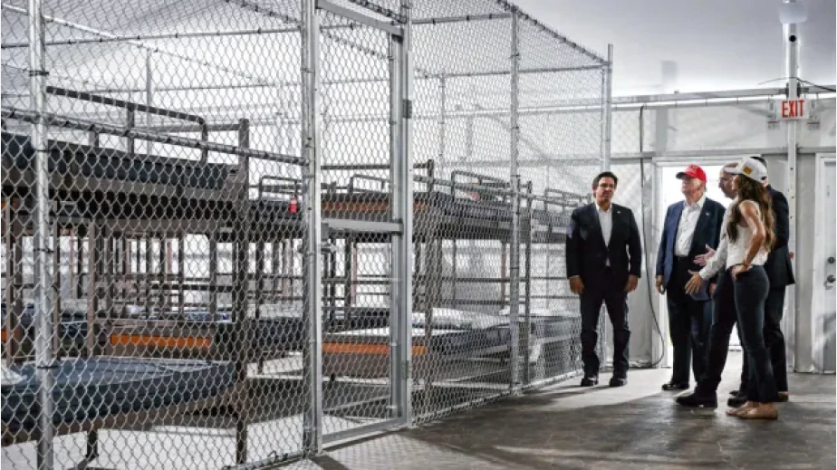 Центърът за задържане в Южна Флорида "Алигатор Алкатраз" трябваше да символизира новата строга имиграционна политика на Съединените щати: затвор с много висока степен на сигурност, разположен в сърцето на Евърглейдс (Флорида), подкрепен лично от Доналд Тръмп и построен за рекордно кратко време върху бивше летище.