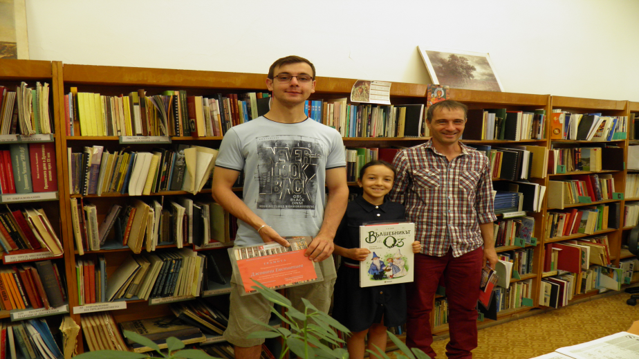 Регионална библиотека „Светослав Минков” връчи днес награди на трима от най- любознателните си читатели. Наградата е наречена „Откривател на книги и познание”. С нея библиотеката реши да поощри не само четящи хора, а такива, които търсят и успяват да намерят в книгите познание. Тримата отличени са Белослава Пенчева- ученичка в III- ти клас в ОУ „Св. Иван Рилски”, Джовани Евстатиев, който тази година тази година завърши ПГТС „Арх. Йордан Миланов” и журналистът Кристиян Иванов. Наградите- специална грамота и книга, бяха връчени днес на тържество в читалнята.