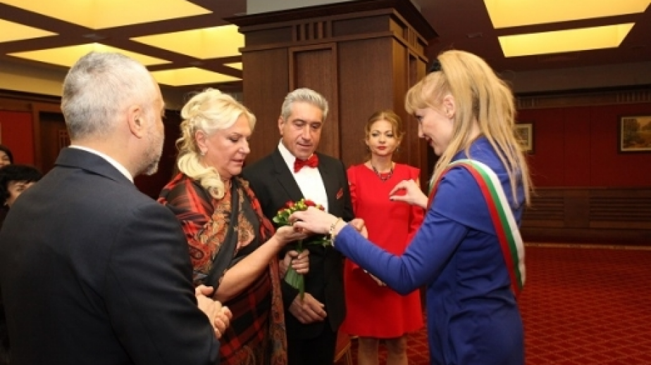 Един от най-чаканите, но и най-изненадващи бракове у нас вече е факт. Днес вдовицата на Владимир Грашнов се венча за художника керамист Георги Юруков. Булката беше облечена като от роман на Стендал - в червено и черно.
