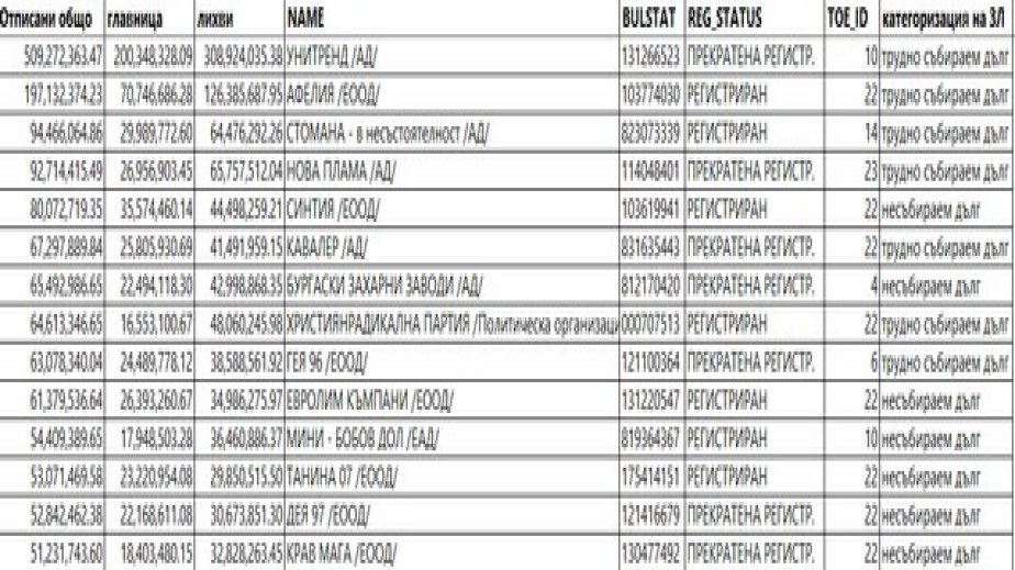 А най-големият длъжник е добре известната "Унитренд", която дължи 509 милиона лева на държавата.