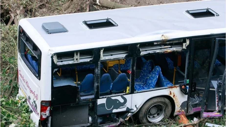 Според снимки, публикувани в социалните мрежи, превозното средство се е разцепило на две, докато се е търкаляло по склона.