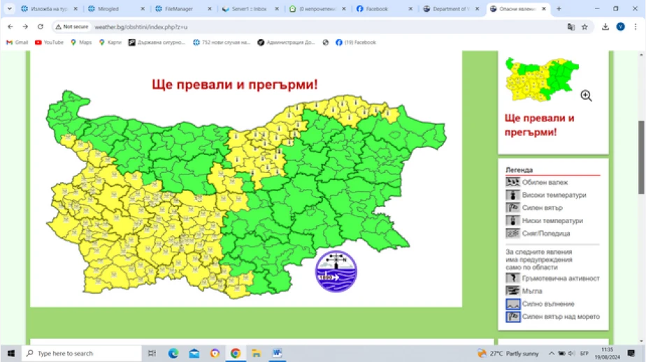 Предупредителен жълт код за интензивни валежи и гръмотевици издаде НИМХ на БАН за Пернишко утре – 20 август. Ще има обаче и условия за градушки.
