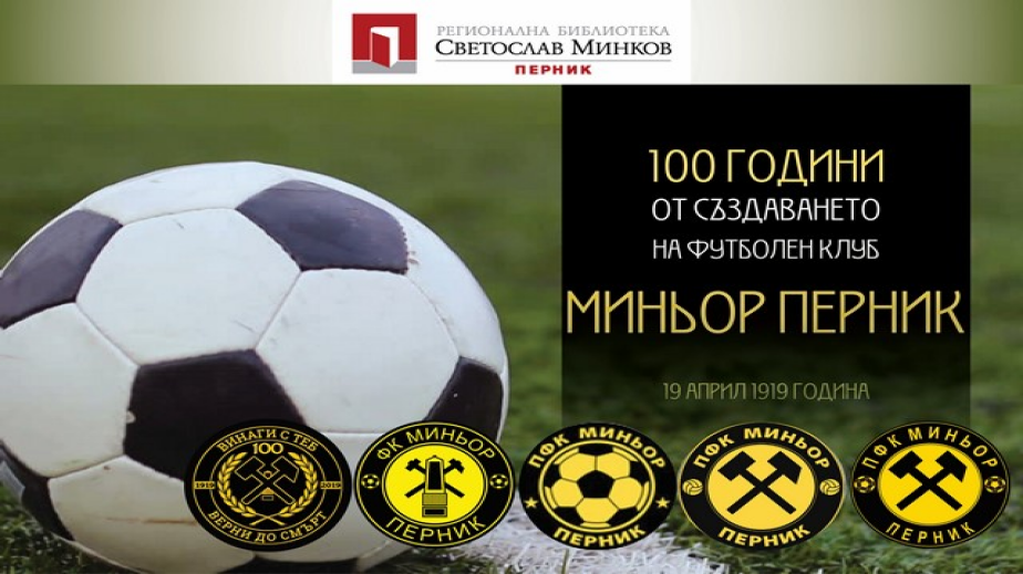 Регионална библиотека „Светослав Минков” направи библиотечна и виртуална витрина по повод 100 години от създаването на ФК „Миньор“ – Перник. 19-ти април е точната дата на вековната годишнина. Интересни библиотечни материали разказват за славната история на „жълто-черните” и припомнят най-големите постижения на отбора.