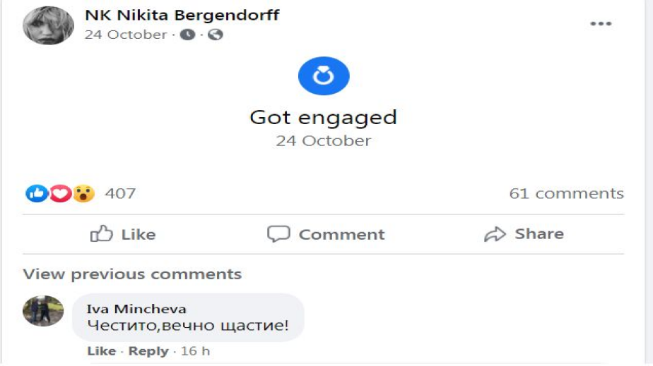 Щастливото събитие в личен план съобщи Жана в личния си профил във Фейсбук и заваляха честитки от нейни приятели и почитатели, а един от тях й дори и се предложи за кум. Сред първите, които я поздравиха, бяха колегата й от група „Екуинокс", с която представяха България на „Евровизия", Владимир Михайлов и шефката на родната делегация на песенния конкурс на Европа Йоана Левиева-Сойер.