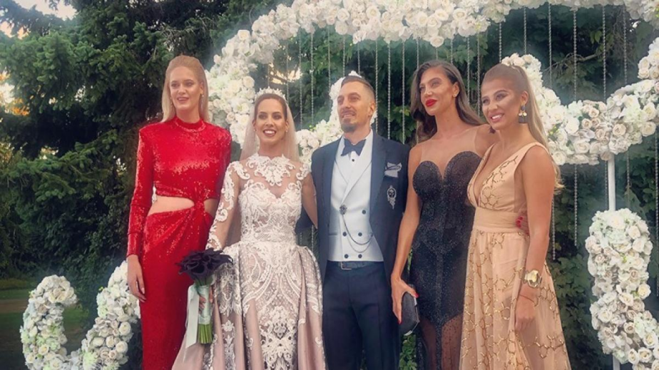 Кума беше сестра й Славея, която заблестя в разкошна дълга, зелена рокля. Булката събра погледите на отбраните гости с тоалет от дантела, който в по-късните часове от пищна рокля с А-линия се превърна в сексапилна дреха по тялото. Специална роля имаше и малката Илияна, която вървеше след майка си в приказна синя рокля и хвърляше цветя по пътя към изнесения ритуал.