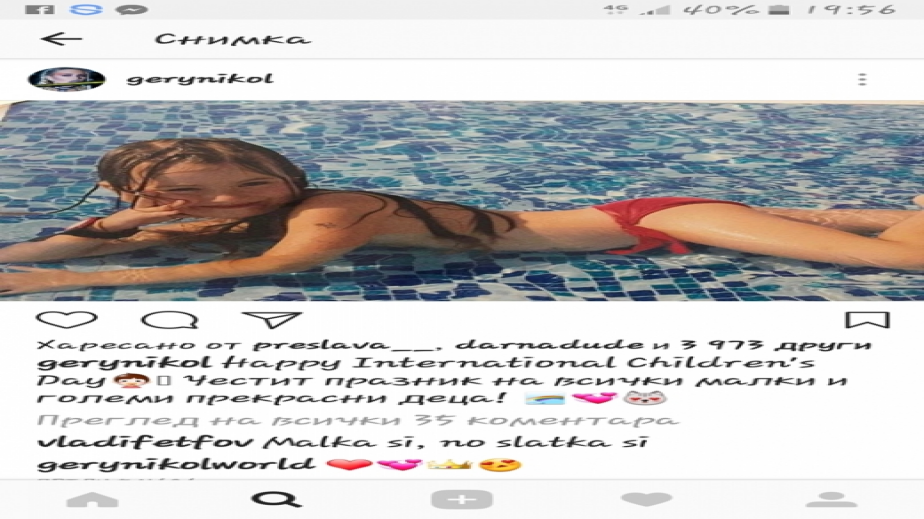 Скандалната тийнейджърка Гери-Никол предизвика истински фурор в Деня на детето, видя БЛИЦ. Красавицата публикува своя детска снимка изтегната в басейн.