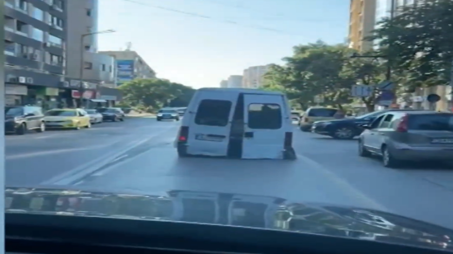 От публикуваните кадри обаче е видно, че превозното средство има проблем с конструкцията. Ламаринената опаковка на буса се влачи по пътя, като на един от участъците се вдига и силна пушилка.