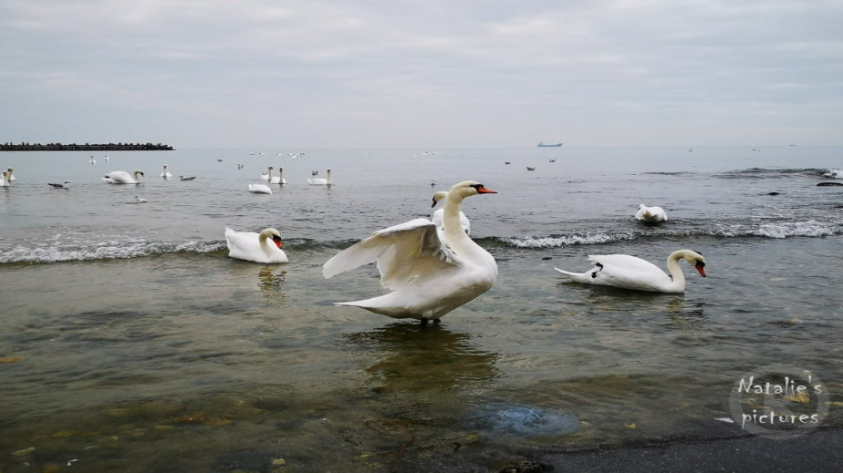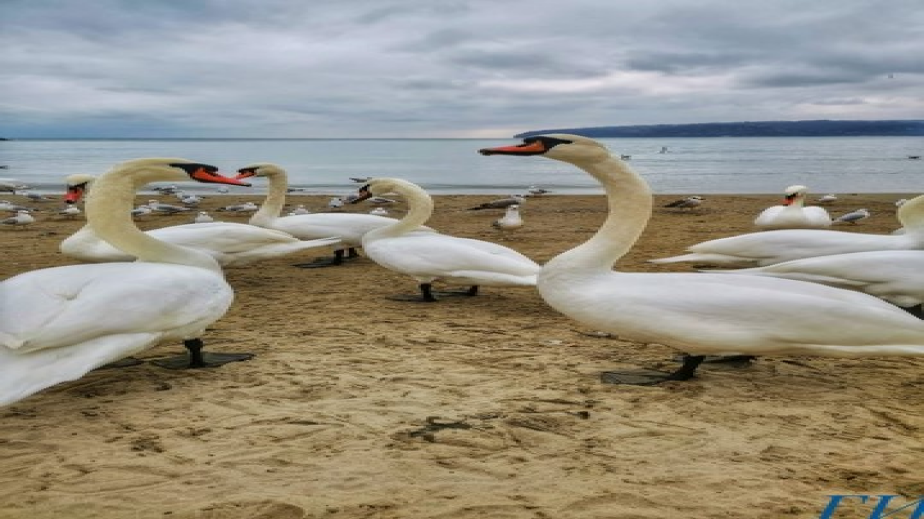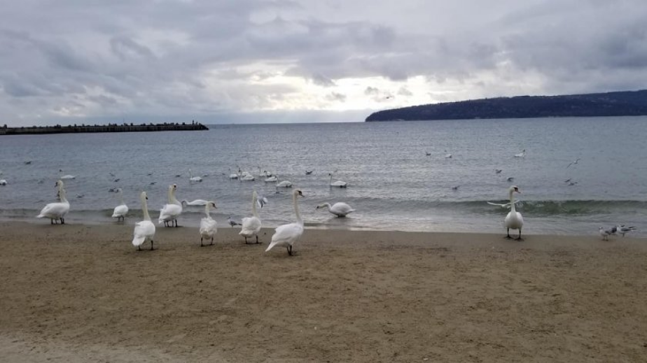 Птиците от Северна Европа са от защитения вид ням лебед, наречен така заради специфичния звук, който птиците издават. Те остават на варненския плаж до късна пролет, когато отново отлитат на север.