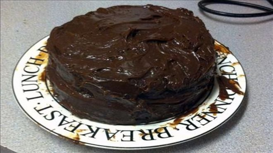 Маслото и шоколадът се разтапят и се смесват по между си. Разбиваме яйцата със захар. В яйчената смес слагаме брашно и не спираме да бием, докато не стане еднородна . Част от разтопения шоколад наливаме в брашнената смес и добавяме содата. Слагаме в подходящ съд. Печем в микровълновата на пълна мощност за 5 минути. Полученият блат разрязваме на три пласта. По всеки пласт намазваме с течен шоколад. Украсяваме по желание.