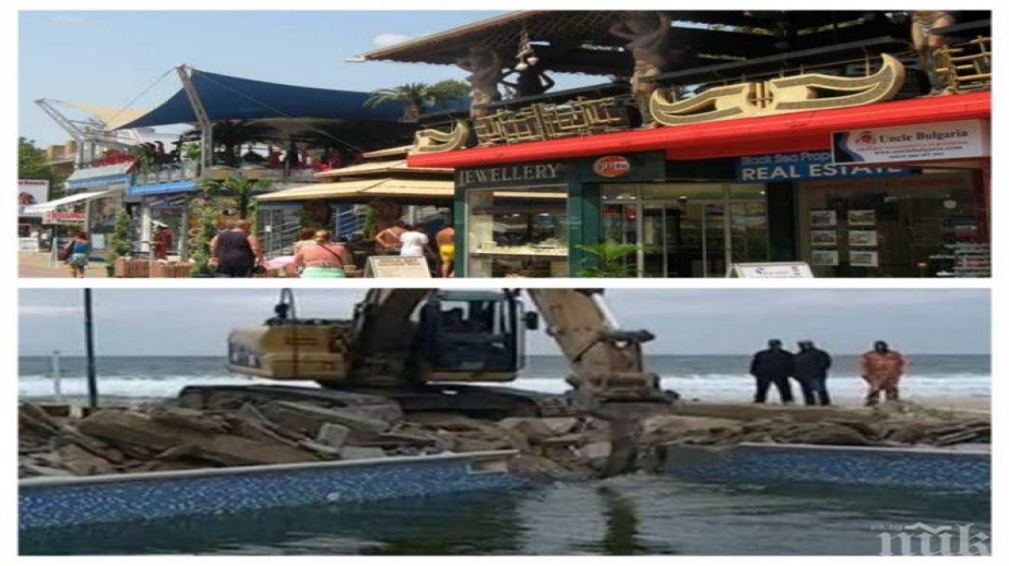 Масово събаряне на търговски обект в центъра на Слънчев бряг е започнало преди минути в курорта, съобщи Флагман, цитиран от ПИК. Багерите са погнали около 50 магазина, които според наши източници са незаконни.