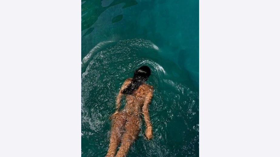 Моделката публикува кадър в инстаграм, на който е напълно гола, плувайки в кристално чиста вода по време на семейната почивка на екзотичен остров.