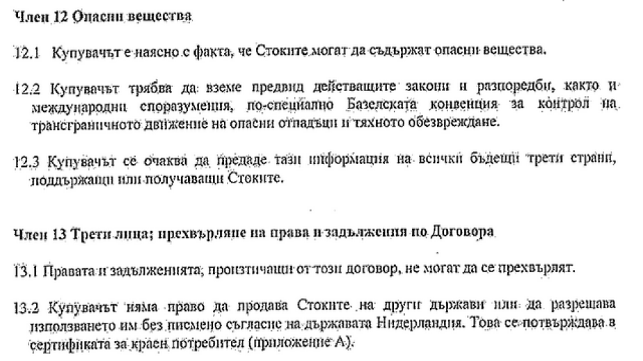 Още по-скандалното е защо българското военно министерство под ръководството на Красимир Каракачанов е закупило въпросните „кораби” минен ловец „Мааслуис” и минен ловец „Хелевутслайс”, въпреки факта, че те представляват опасен отпадък. В чл. 12 намираме следното предупреждение: „Купувачът трябва да вземе предвид действащите закони и разпоредби, както и международни споразумения, по-специално Базелската конвенция за контрол на трансграничното движение на опасни отпадъци и тяхното обезвреждане”.