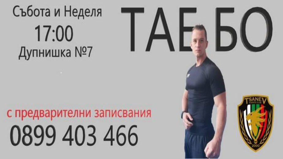 Спортният център ще развива и тренировки по тае - бо за желаещите да поддържат добра форма през почивните дни, а именно събота и неделя от 17 часа с предварителни записвания.