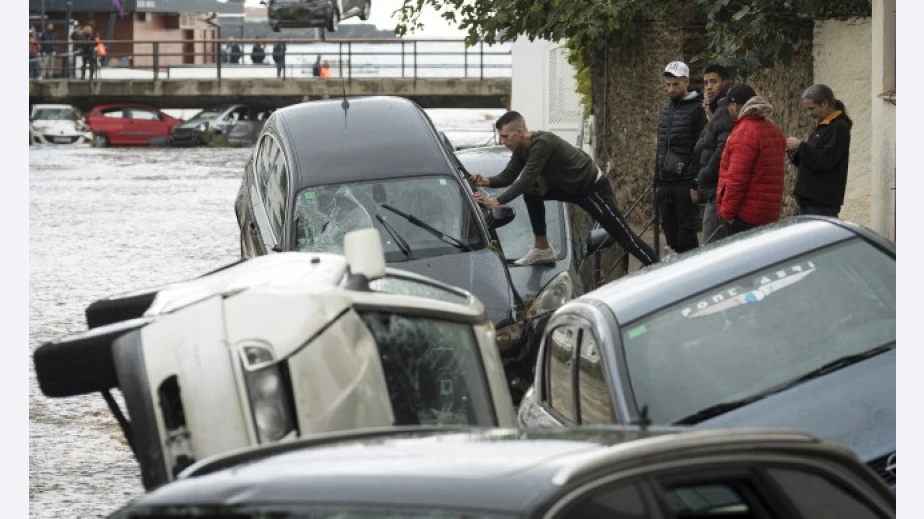 Колите са били отнесени от реката, която преминава през града, след като тя е преляла. /Източник: Днес.бг