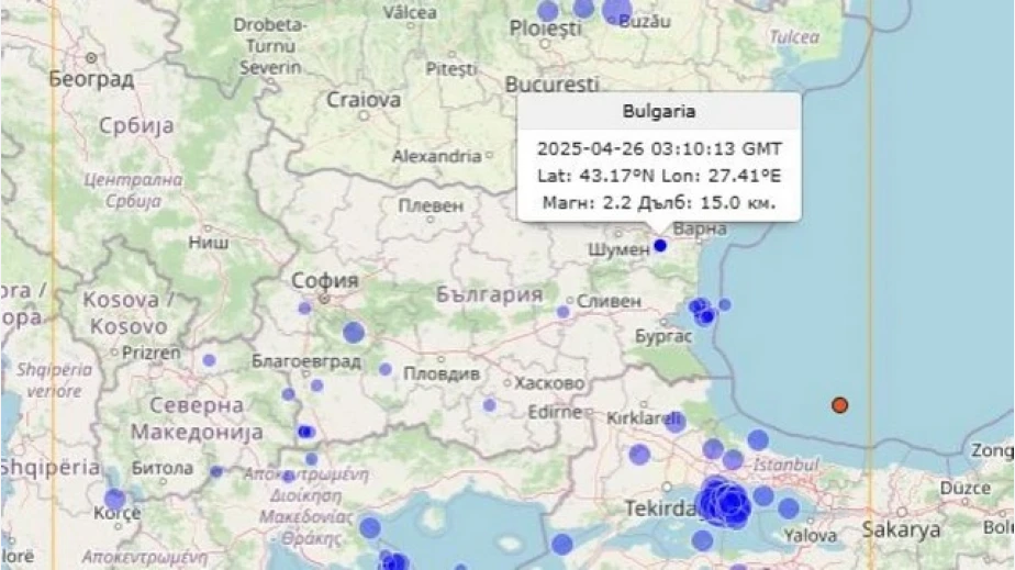 Земетресение бе регистрирано рано тази сутрин в България. Епицентърът му е бил в района между Шумен и Варна. Данните са на НИГГГ-БАН.