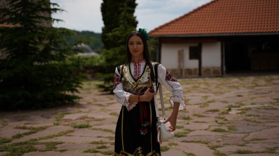 Модераторът на колоквиума „Пътят към Храма", Весела Барбукова бе избрала носия, която събираше в себе си фолклорни и национални символи. А пъстроцветното везмо допринасяше за още по-тържествено настроение на събитието.