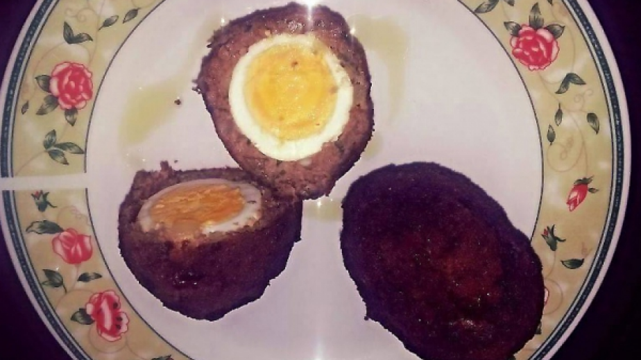 Овиваме яйцата в кайма и пържим в сгорещена мазнина.
