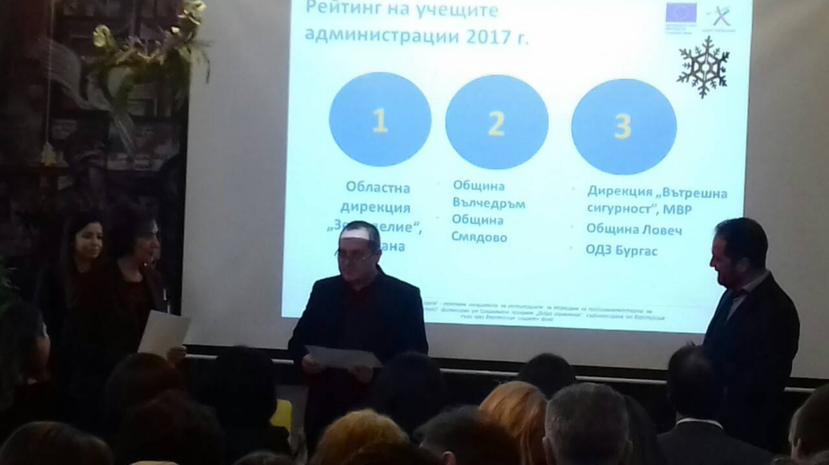 Наградата показва високото ниво на административен капацитет, на служителите от общинската администрация.