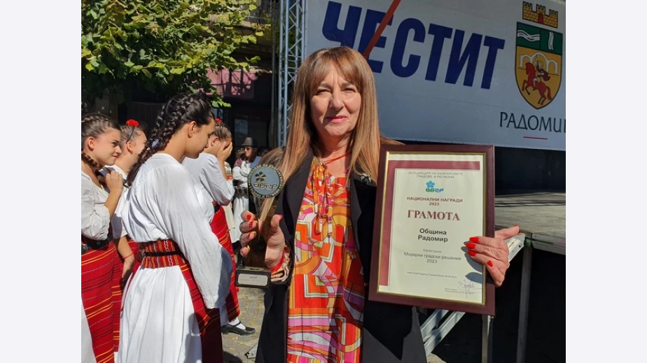 Като оценка за работата на общинската администрация и екипа на кмета Пламен Алексиев през досегашния мандат, точно днес община Радомир получи награда от Асоциацията на българските градове и региони за Модерни градски решения.
