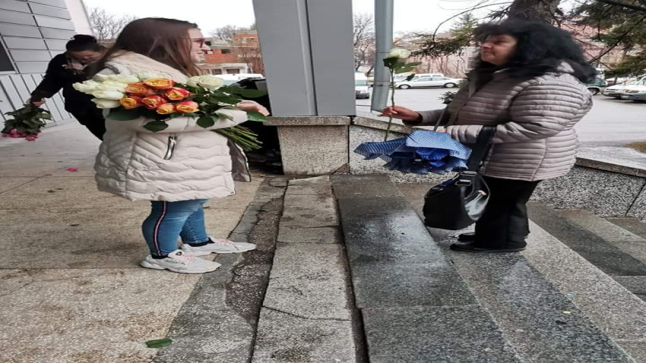 По повод Международния ден на жената млади социалисти дариха с роза на входа на здравното заведение сутринта излизащите от нощна и постъпващите за първа смяна лекарки, медицински сестри, санитарки и всички представителки на медицинското съсловие.