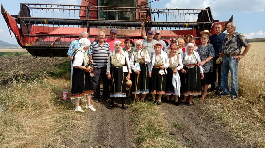 Жените от читалището, облечени в носии и със сърпове на рамо изпяха песен. След това бе разчупена пита пред комбайна, разбита бе бутилка червено вино, а машината бе закичена с китка.