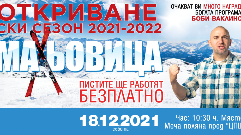 На 18 декември с напълно безплатни писти ще сложат начало на ски сезона на Мальовица. Организаторите ще посрещнат гостите с музикална програма и стотици награди, а Боби Ваклинов ще се погрижи за доброто настроение на всички.