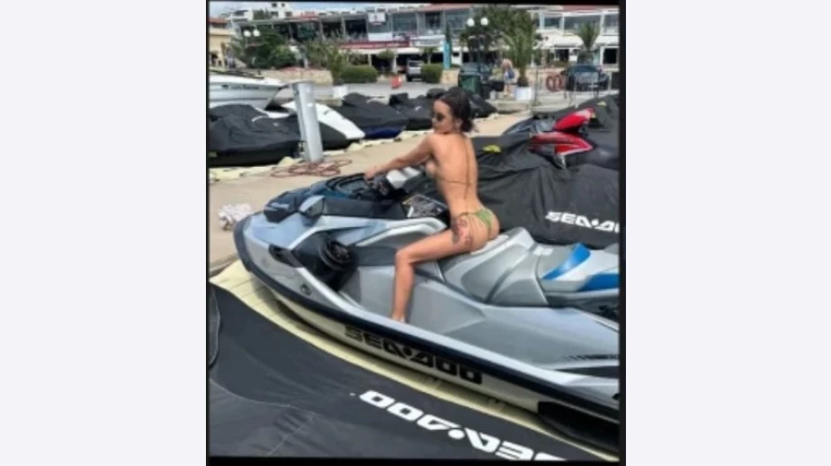 Изпълнителката, която приковаваше по същия начин вниманието и по време на участието си в хитовото шоу за имитации "Като две капки вода", отново иска да предизвика сърцебиене в последователите си. Този път полугола на джет в морето. Кадрите, качени на стори, предизвикаха много страсти. Отварачката е навирила полуголото си дупе-барабанче и гледа сладострастно.