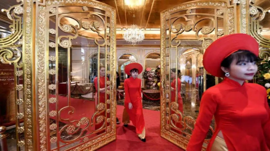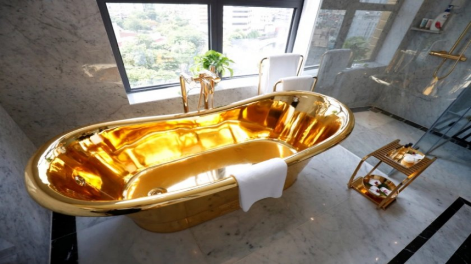 Във Виетнам отвори първия в света позлатен хотел. В него дори чашките за кафе и тоалетните са покрите с 24-каратовия метал. В хотел „Долче Ханой Голдън Лейк” има дори позлатен басейн на покрива, пише вестник "Сън".