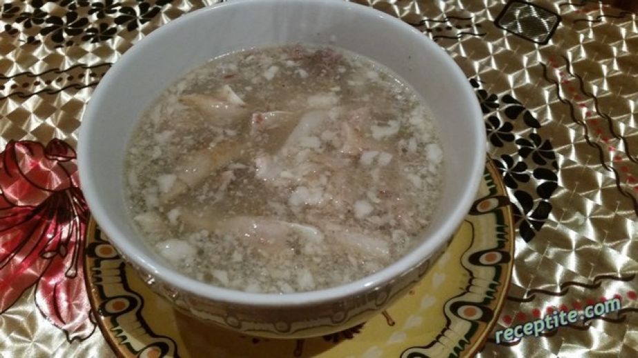 Свинските крака и уши се сваряват в подсолена вода. Дафиновите листа се слагат почти накрая. Месото се нарязва на дребно. Бульонът се прецежда, слагат се месото, черният пипер и чесънът. Изсипва се в тавичка и се оставя да се желира. /Рецепта на receptite.com