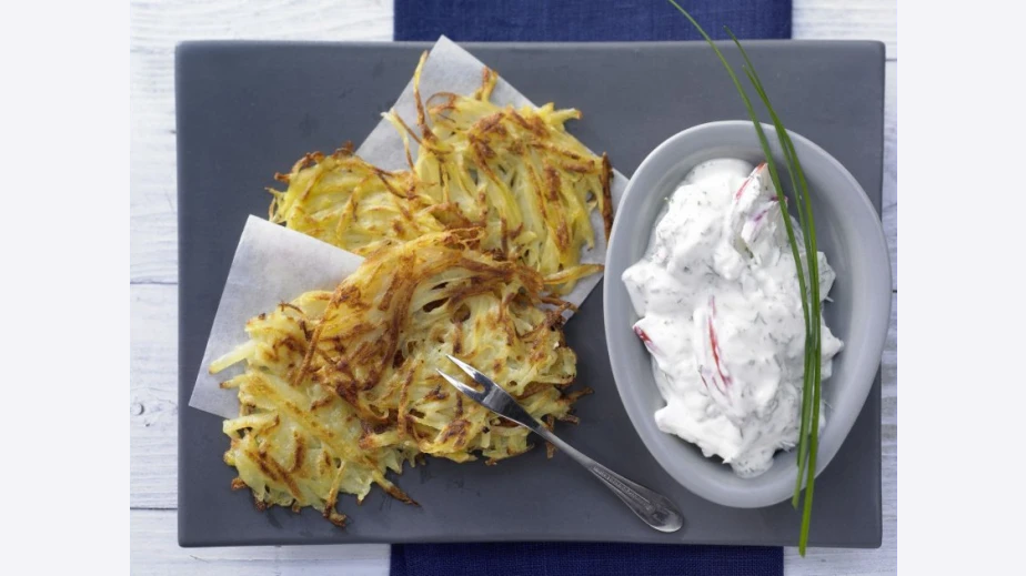 Картофите се обелват и се настъргват.