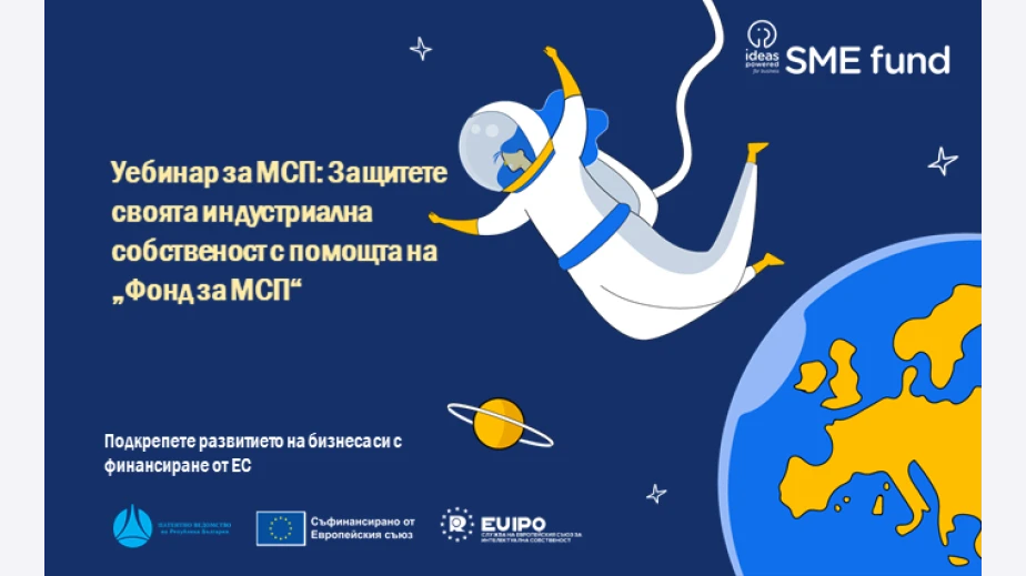 Патентно ведомство на България организира уебинар на тема „Защитете своята индустриална собственост с помощта на „Фонд за МСП“, който ще се състои на 28 февруари 2025 г. (петък), от 10:30 до 11:30 ч.