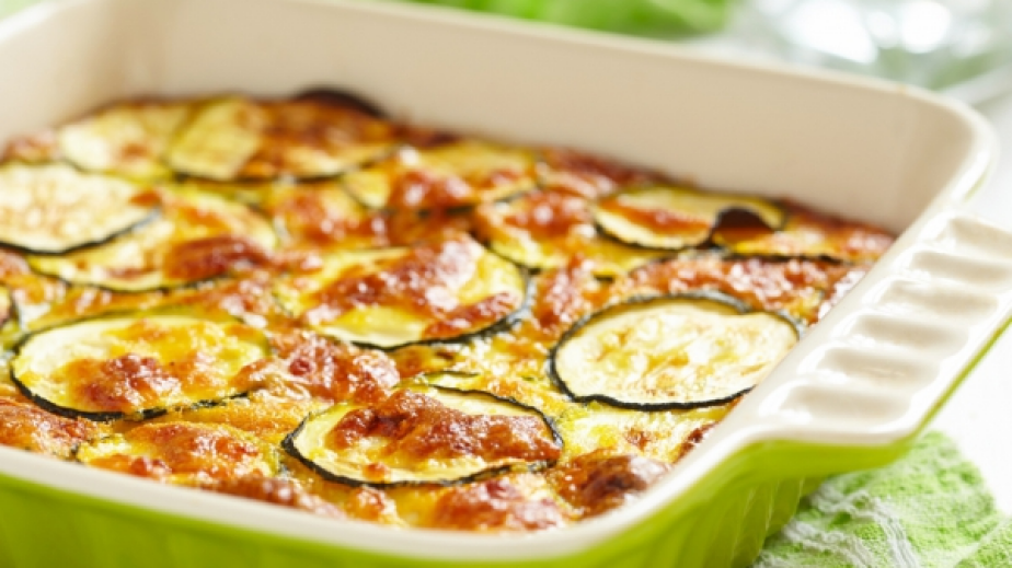 Необходими ПродуктиНарежете патладжаните на дебели резени и ги подредете върху решето, като преди това ги посолите. Оставете патладжаните за 10 минути, след което ги подсушете с кухненска хартия.През това време разбийте яйцето и постепенно прибавете брашното и малко мляко. Постепенно добавете останалото мляко, мащерката и подправете на вкус. Оставете готовата смес на хладно.Предварително загрявате фурната на 220 градуса. Нарежете лука и чушките на четвъртини, а тиквичките на колелца. Сложете олиото в тавичка за печене и я поставете във фурната, за да се затопли. След това сложете и зеленчуците, включително и патладжана и ги оваляйте в мазнината.Оставете зеленчуците да се пекат около 20 минути. Когато олиото е вече добре загряло, изливате приготвената по-рано смес върху зеленчуците.Върнете тавичката за още 30 минути във фурната. Трябва ястието да бухне и да стане златисто – тогава намалете на 190 градуса и оставете да се пече още 10-15 минути. Поръсете с пармезана, подправките и поднесете.