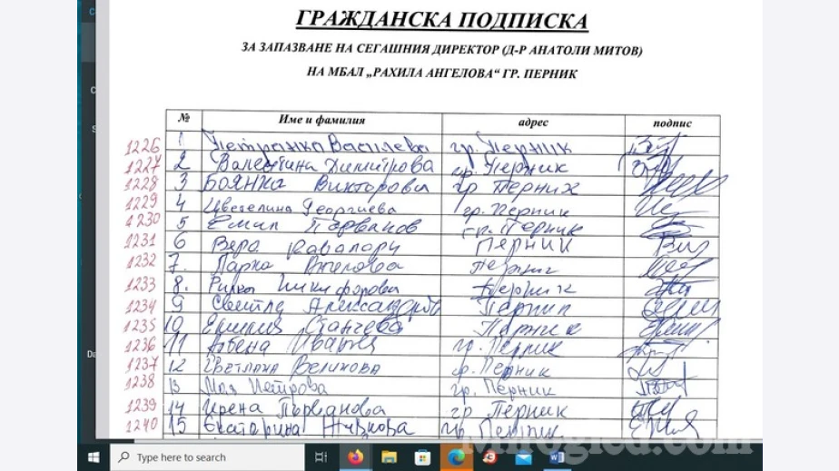 Гражданската подписка е събрана от перничанката Габриела Григорова на територията на града.