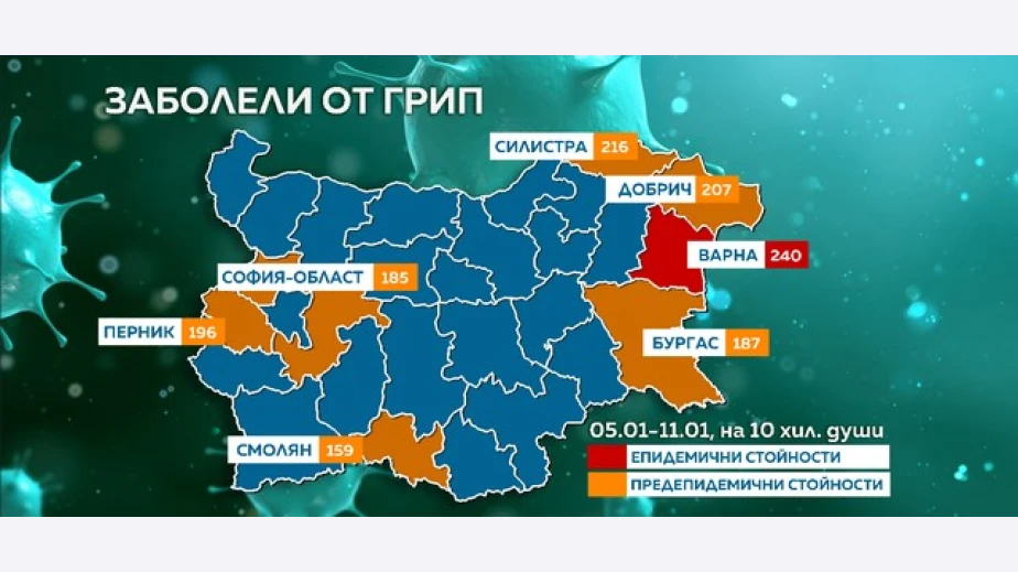 Заради сериозен ръст на заболелите от грип и остри респираторни вируси във Варна Регионалната здравна инспекция направи предложение да бъде обявена грипна епидемия в областта от 14 януари. Това съобщи директорът на инспекцията Цонко Паунов след заседание на Областния щаб за борба с грипа. След часове От Министерството на здравеопазването обявиха временни противоепидемични мерки от 14 до 20 януари включително.