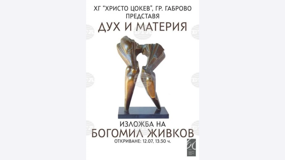 Скулптурната изложба „Дух и материя“ на перничанина Богомил Живков ще бъде открита в Художествена галерия „Христо Цокев“ в Габрово днес - 12 юли. Това съобщиха за БТА от Художествена галерия „Христо Цокев“.