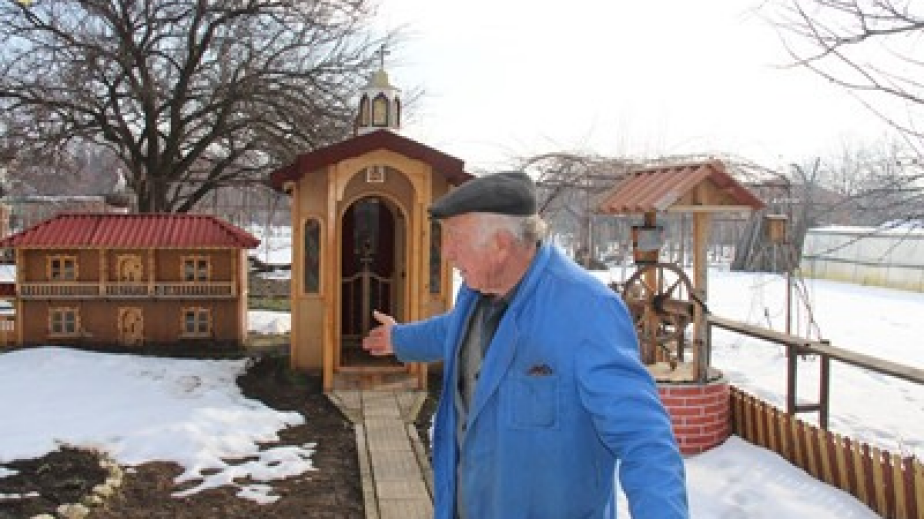 Ангел Маринов цял живот е изработвал мебели. Казва, че още го сърбят ръцете за работа. Започнал през януари 2013 г. и за 4 месеца издигнал дървената църквичка в двора си.