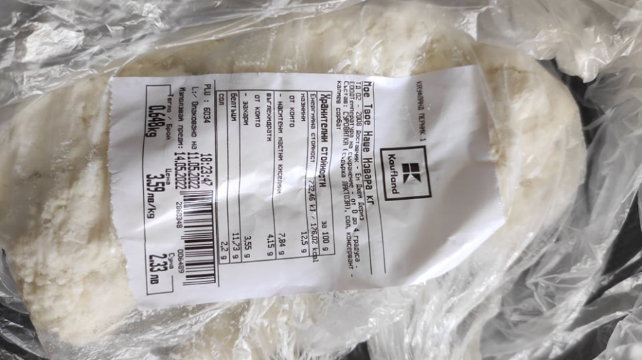 На етикета предоставен ни от нея е видно, че млечното изделие е закупено от търговската верига "Кауфланд" в Перник. На етикета се вижда количеството, датата, часът и цената, която е заплатила перничанката .
