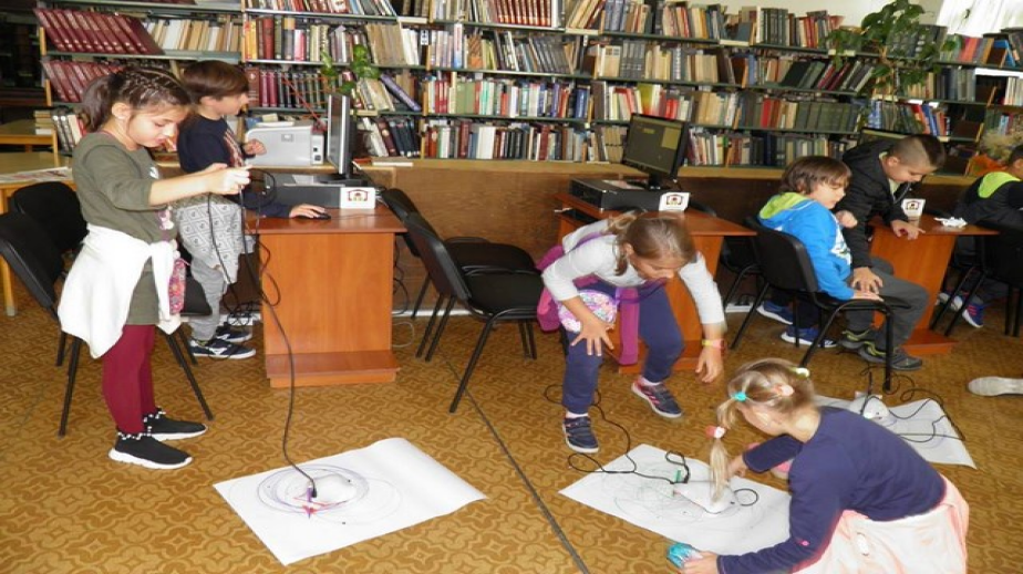 С това първо занимание Регионална библиотека „Светослав Минков" се присъедини към инициативите, организирани по време на Европейската седмица на кодирането с поредица от безплатни семинари за работа с робота Финч.
