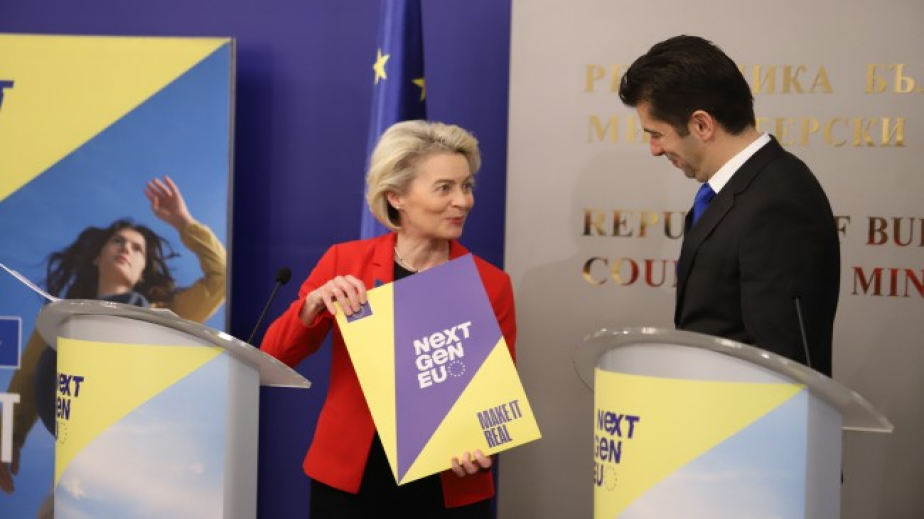 "Благодаря на Урсула фон дер Лайен за нейното присъствие днес и за предаването на Плана за възстановяване и устойчивост, който вече е финализиран. Този план, който е в размер над 12 млрд. лв., е близо 10% от нашата икономика. Той дава възможност България да се трансформира", отбеляза Петков по време на съвместната пресконференция с председателят на ЕК.