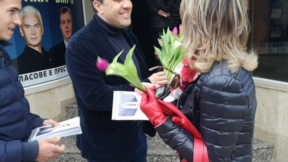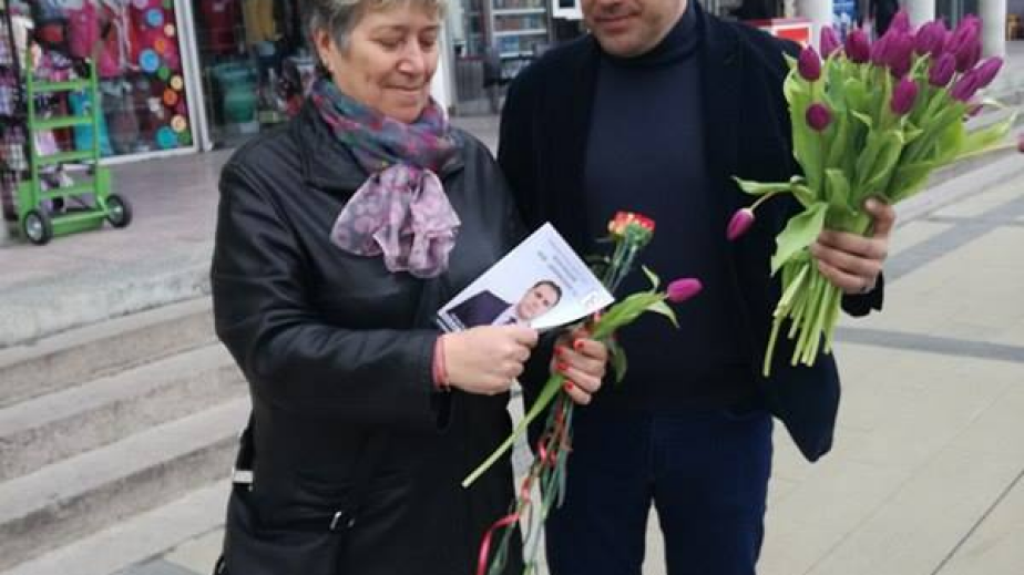 Петър Първанов-водач на листата от коалиция „АБВ-Движение 21” поздрави дамите от Перник с международния ден на жената 8-ми март.Той подари по едно лилаво лале на перничанки с пожелания за личен успех.