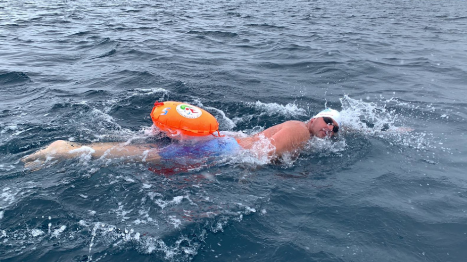 Близо до остров Тринити, в залива Микелсон Харбър българинът финишира с аванс от една минута пред конкуренцията, а последните метри дори плува бътерфлай.