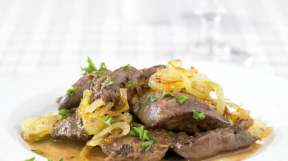 Със соса се поливат дробчетата. Гарнират се с пържения лук и се поръсва с магданоз.