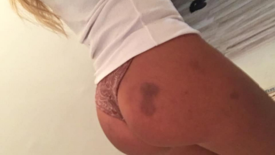 „Нека не се правим на каквито не сме“, написа като допълнение към еротичния фотос, на който ясно се виждат посинените й бедра и дупе. От отпечатъците по кожата й можем да съдим, че нейният приятел е използвал задните й части като барабани.