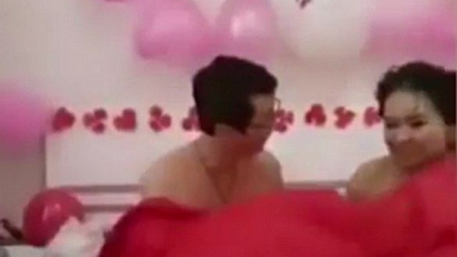 След последвал натиск от обкръжаващите ги мъже и жени, голите младоженци се прегърнали в леглото. Но гостите не останали доволни от действията им. Те изкомандвали младоженката да се качи върху съпруга си и даже ги побутват един към друг. Може да се чуе и как гостите се заливат от смях, но все пак още не били доволни от видяното и даже вдигат завивката, за да се уверят, че двамата съпрузи са в правилната позиция за секс.